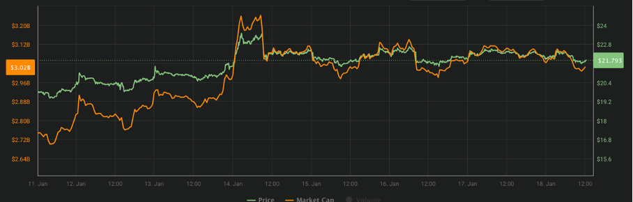 The role and market share of Ethereum Classic has increased greatly since the transition of Ethereum. It is currently the 24th cryptocurrency by Market cap. In the past week, its exchange rate has strengthened, on January 10, the exchange rate hovered around 20 USD (at the end of 2022 the exchange rate was around 15 USD), which after a week keeps the value of 22 USD quite stable, which is a 10% rise. ETC’s market share also seems to be strengthening, only in the last one week a 12% increase was experienced.
